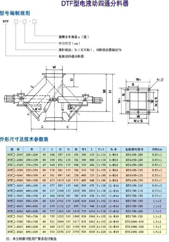 產(chǎn)品簡(jiǎn)介: 四通分料器: 四通分料器主要由閥體、閥軸、閥板、曲柄機(jī)構(gòu)、電液推桿等組成,工作時(shí)電液推桿的直線往復(fù)運(yùn)動(dòng)通過(guò)曲柄帶動(dòng)閥軸、閥板作一定角度的擺動(dòng),從而輸送物料、控制物料的流向及流量。DTF型電液動(dòng)四通......